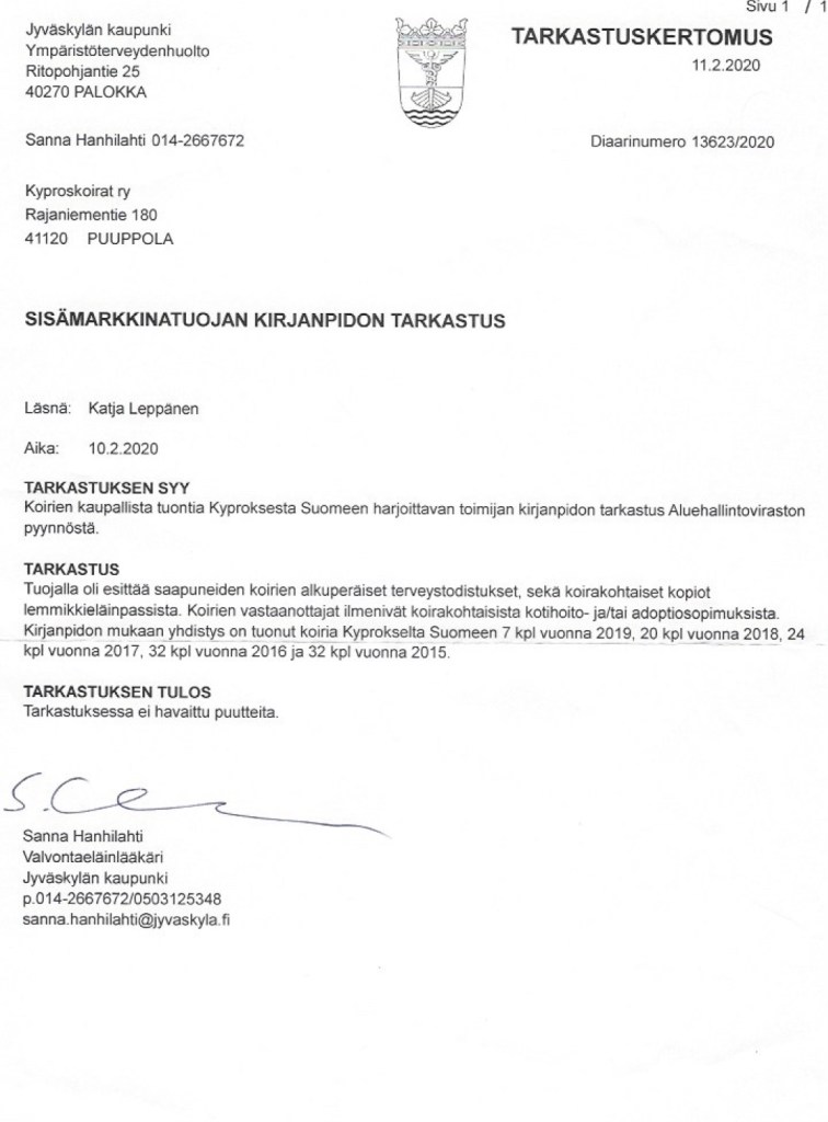 Sisämarkkinatuojan kirjanpidon tarkistus Valvontaeläinlääkärin lausunto koirien tuontiin liittyvästä kirjanpidosta Aluehallintoviraston pyynnöstä Tykkää Lataa...